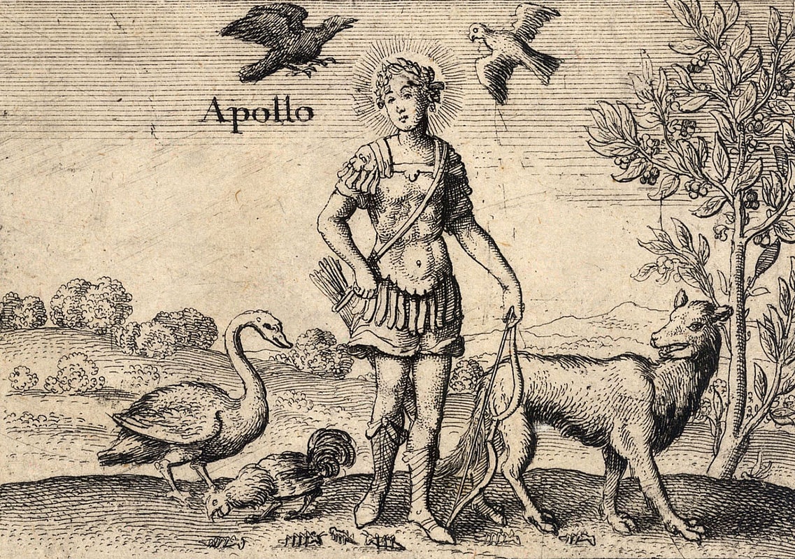 Apollo is a god of many attributes. Strongly tied to the arts due to his relationship to the Muses, he is also associated with the Sun (whilst his twin sister Artemis is tied to the Moon), archery, healing and knowledge.