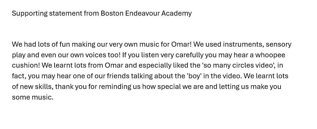 - ‘I have been teaching Music in Special Schools around Manchester and Cheshire for 20 years and this is the most inclusive and exciting project I have seen over the years. The work Emily has done to truly ‘include’ SEND is brilliant. Well done ENO!’